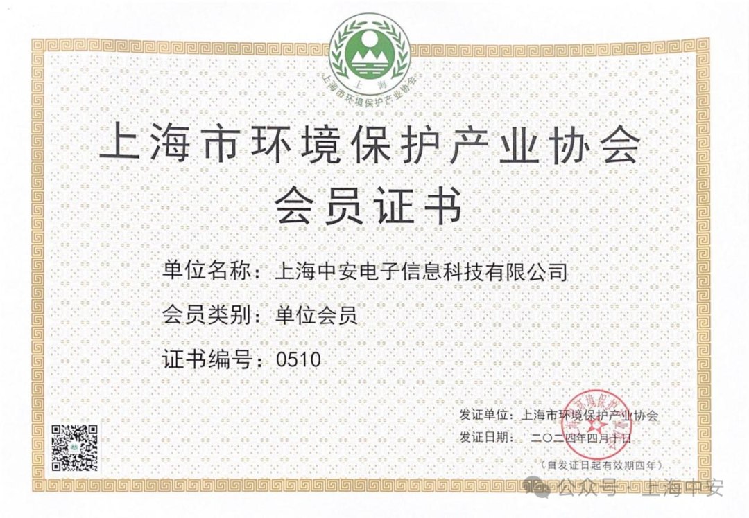 中安科技正式加入上海市環境保護產業協會(2024-04-18)