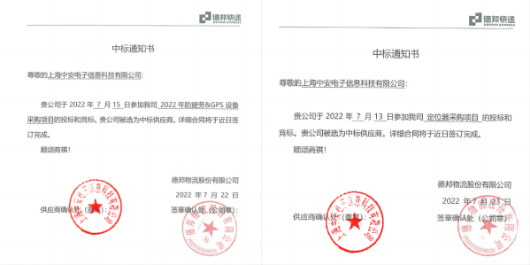 中安科技/甚解風控中標德邦物流“車載智能終端設備采購” 項目(2022/09/1)